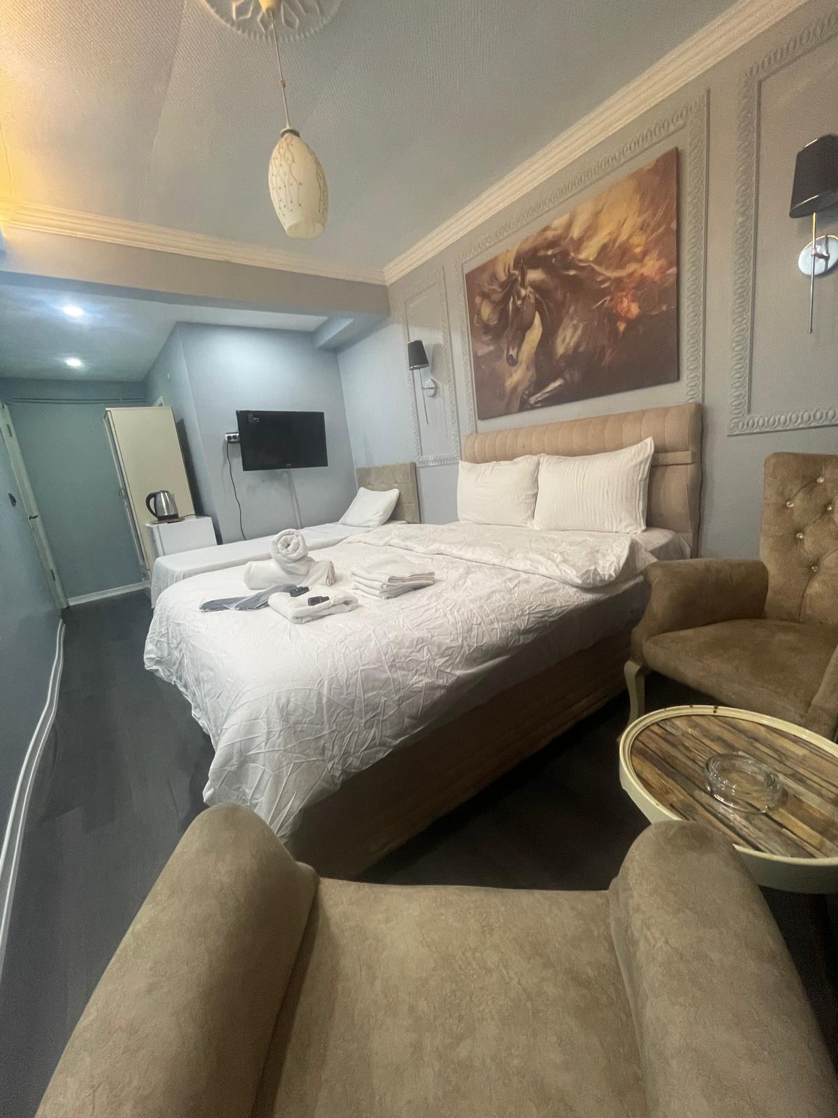 Misafirlerimizin konforu ve güvenliği ön planda tutulmuş odalarımız, özenle hazırlanmış ve geniş bir kullanım alanı sunmaktadır. Tüm odalarımızda 7/24 oda servisi hizmeti mevcuttur. Konforlu bir konaklama deneyimi için odalarımızda D-Smart TV, yüksek hızlı internet, ücretsiz çay, kahve ve su imkanı sunulmaktadır.